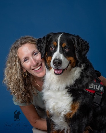 Here is a photo of me and Bruin. It’s our official Therapy Dog image, taken by the very talented and amazing Darlene Woodward of Pant the Town Photography.